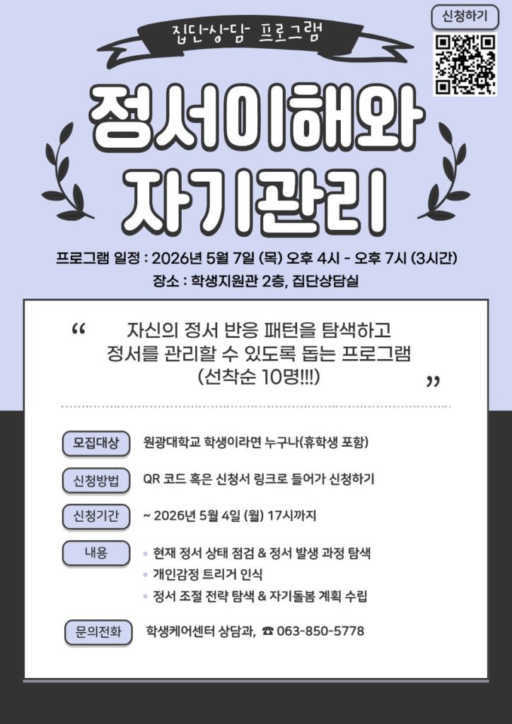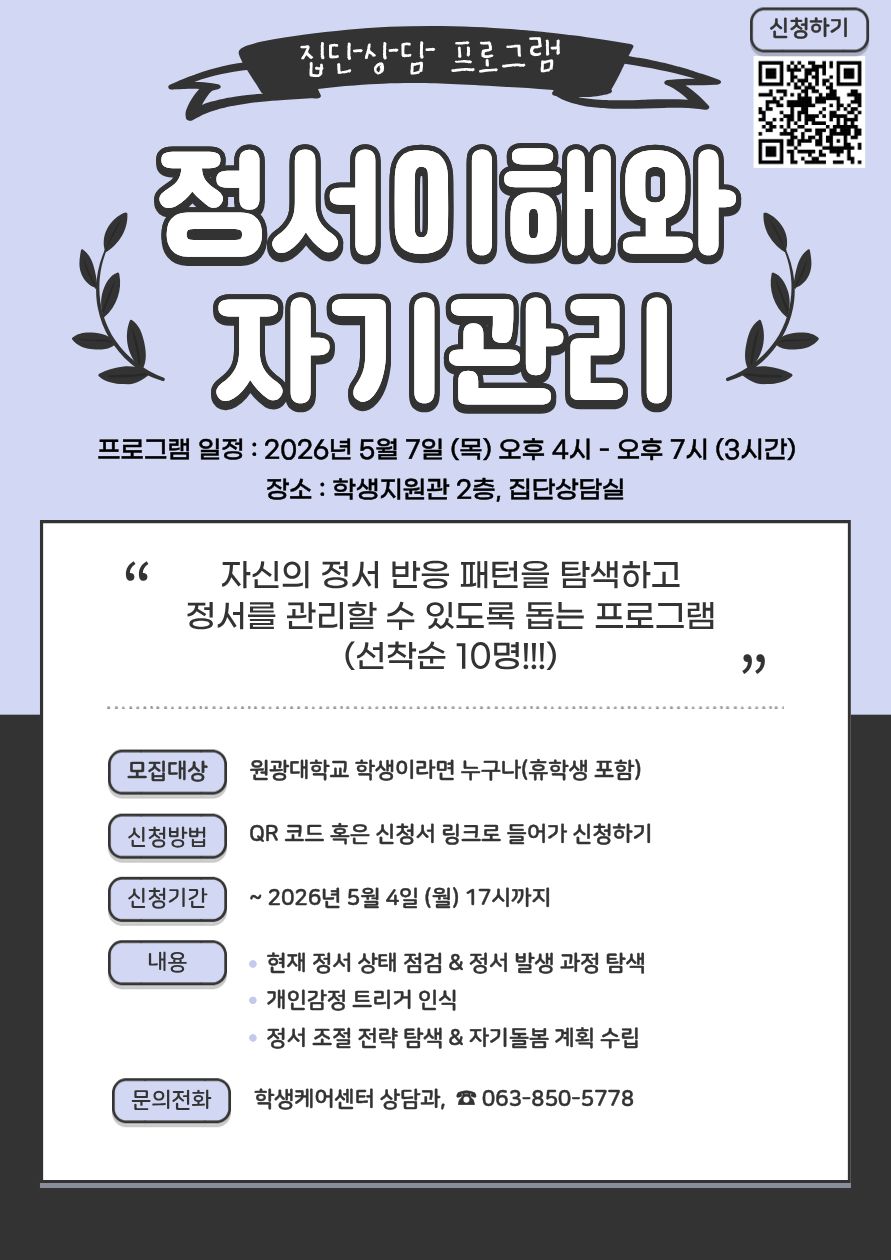 · 진행 장소 : 학생지원관 2층 상담과 집단상담실